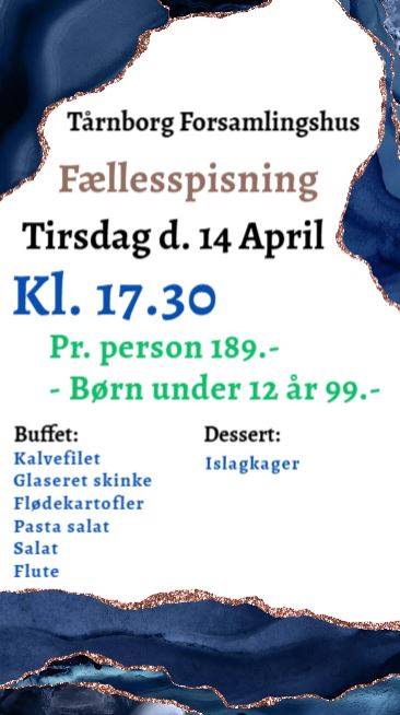 Fællesspisning Tirsdag d. 14 April kl. 17.30 pr. barn